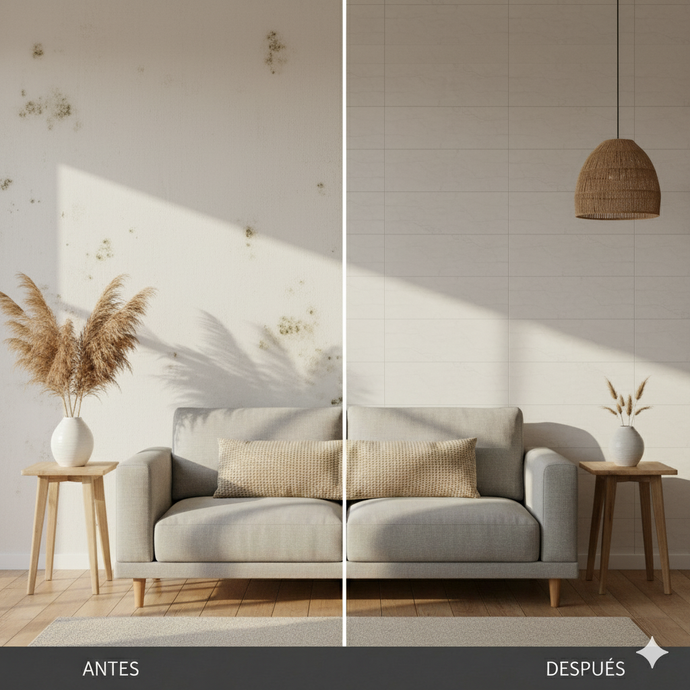 Su estructura microporosa y permeable permite absorber la humedad del muro y liberarla al ambiente, evitando la formación de hongos, moho y salitre.